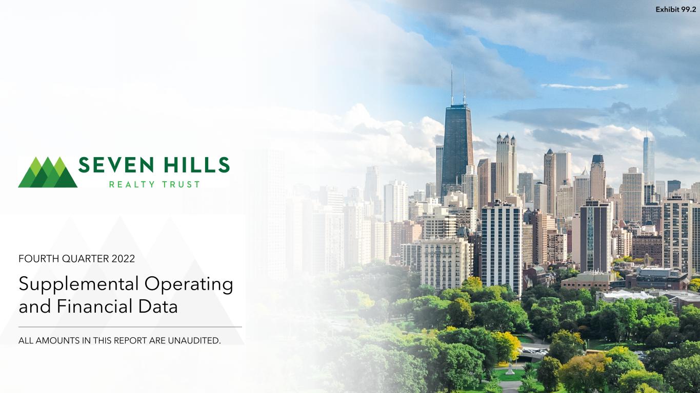 4 Supplemental Q4 2022 4 Investor Information and Research Coverage Board of Trustees Equity Research Coverage Barbara D. Gilmore Phyllis M. Hollis William A. Lamkin JMP Securities Independent Trustee Independent Trustee Independent Trustee Chris Muller, CFA (212) 906-3559 Joseph L. Morea Jeffrey P. Somers cmuller@jmpsecurities.com Lead Independent Trustee Independent Trustee Matthew P. Jordan Adam D. Portnoy Jones Trading Institutional Services, LLC Managing Trustee Chair of the Board & Managing Trustee Jason M. Stewart (646) 465-9932 Executive Officers jstewart@jonestrading.com Thomas J. Lorenzini Tiffany R. Sy President Chief Financial Officer and Treasurer Contact Information Investor Relations Inquiries SEVN is followed by the analysts listed above. Please note that any opinions, estimates or forecasts regarding SEVN’s performance made by these analysts do not represent opinions, estimates or forecasts of SEVN or its management. SEVN does not by its reference above imply its endorsement of or concurrence with any information, conclusions or recommendations provided by any of these analysts. Seven Hills Realty Trust Financial, investor and media inquiries should be directed to: Two Newton Place Kevin Barry, Director, Investor Relations 255 Washington Street, Suite 300 at (617) 332-9530 or ir@sevnreit.com (617) 796-8253 ir@sevnreit.com www.sevnreit.com CORPORATE INFORMATION RETURN TO TABLE OF CONTENTS