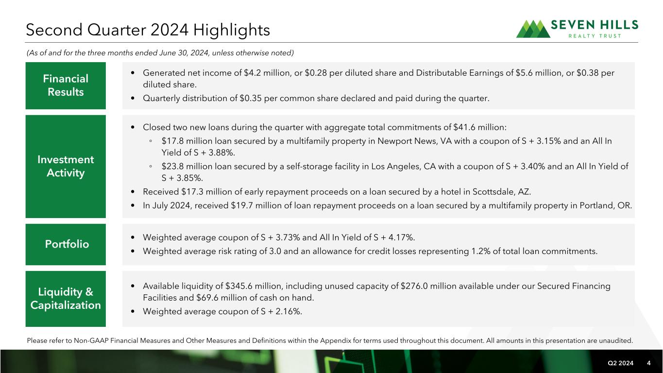 Seven Hills Realty Trust Second Quarter 2024 Financial Results Exhibit 99.2