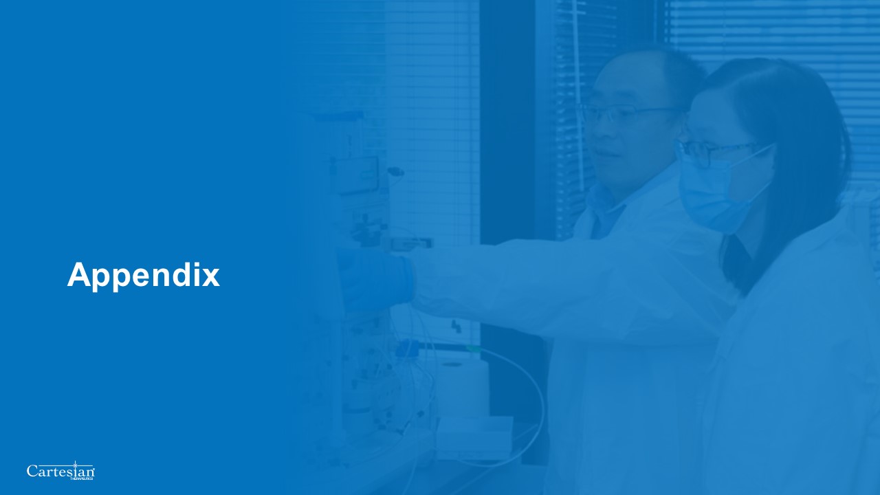 Wholly-owned, in-house manufacturing:27,000 sq. ft. state-of-the-art cGMP facility  Ownership of quality control and production timelines  Flexibility to quickly adapt to changes in processes or needs  Potential cost efficiency   Clinical and commercial manufacturing scale capabilities support maturing pipeline and future growth  Facility located in Frederick, MD