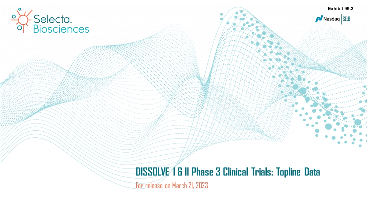 Exhibit 99.2 SELB DISSOLVE I & II Phase 3 Clinical Trials: Topline Data For release on March 21, 2023