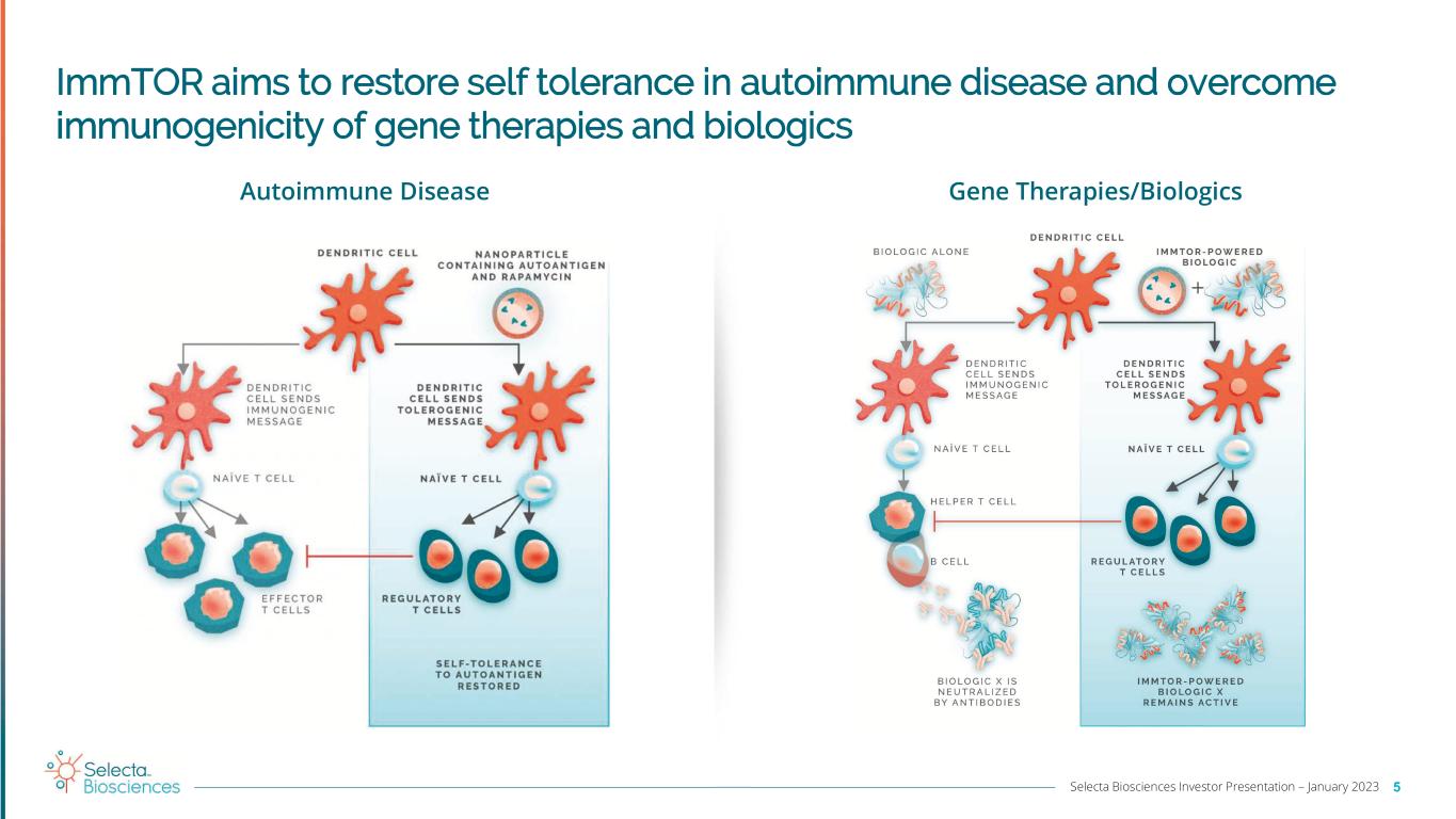 4Selecta Biosciences Investor Presentation – January 2023 Proprietary precision immune tolerance platform with potentially broad applicability ImmTOR combines nanoparticle technology with an FDA approved anti-inflammatory and immunomodulatory drug Designed to generate antigen-specific immune tolerance when combined with an antigen of interest