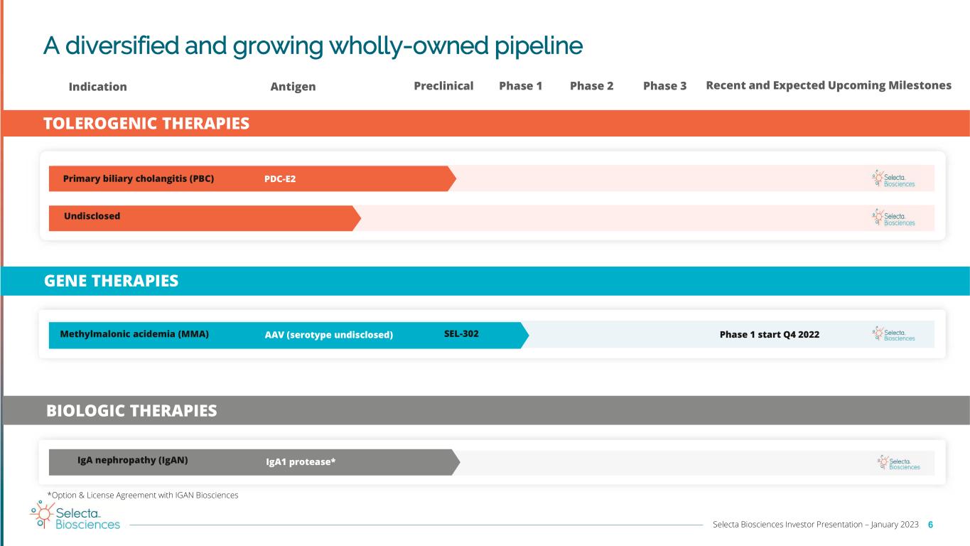 5Selecta Biosciences Investor Presentation – January 2023 ImmTOR aims to restore self tolerance in autoimmune disease and overcome immunogenicity of gene therapies and biologics Autoimmune Disease Gene Therapies/Biologics