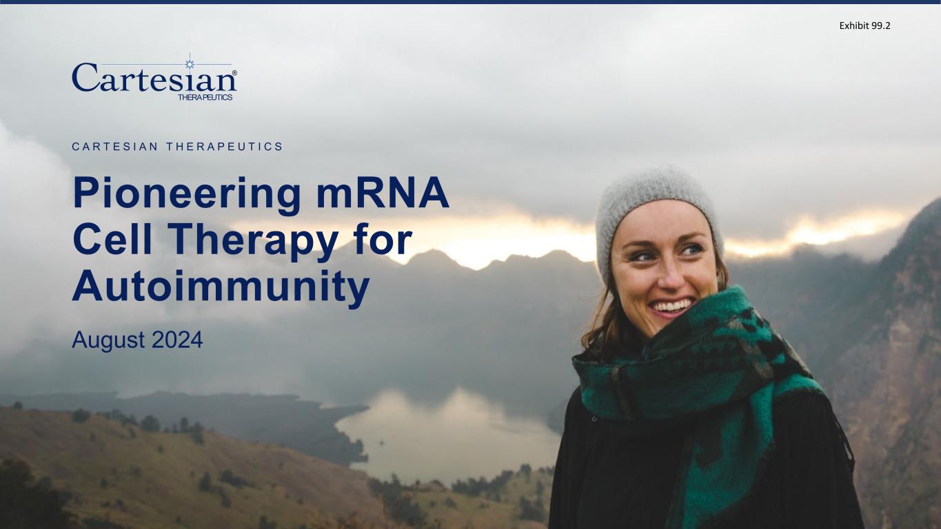 ® THERAPEUTICS Pioneering mRNA Cell Therapy for Autoimmunity August 2024 C A R T E S I A N T H E R A P E U T I C S Exhibit 99.2