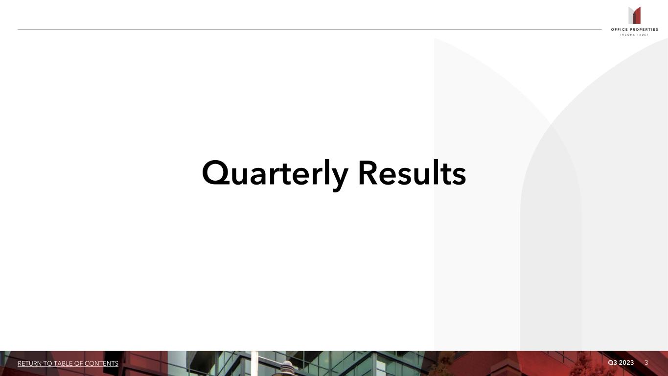 Office Properties Income Trust Third Quarter 2023 Financial Results and Supplemental Information October 30, 2023 Chicago, IL Exhibit 99.2