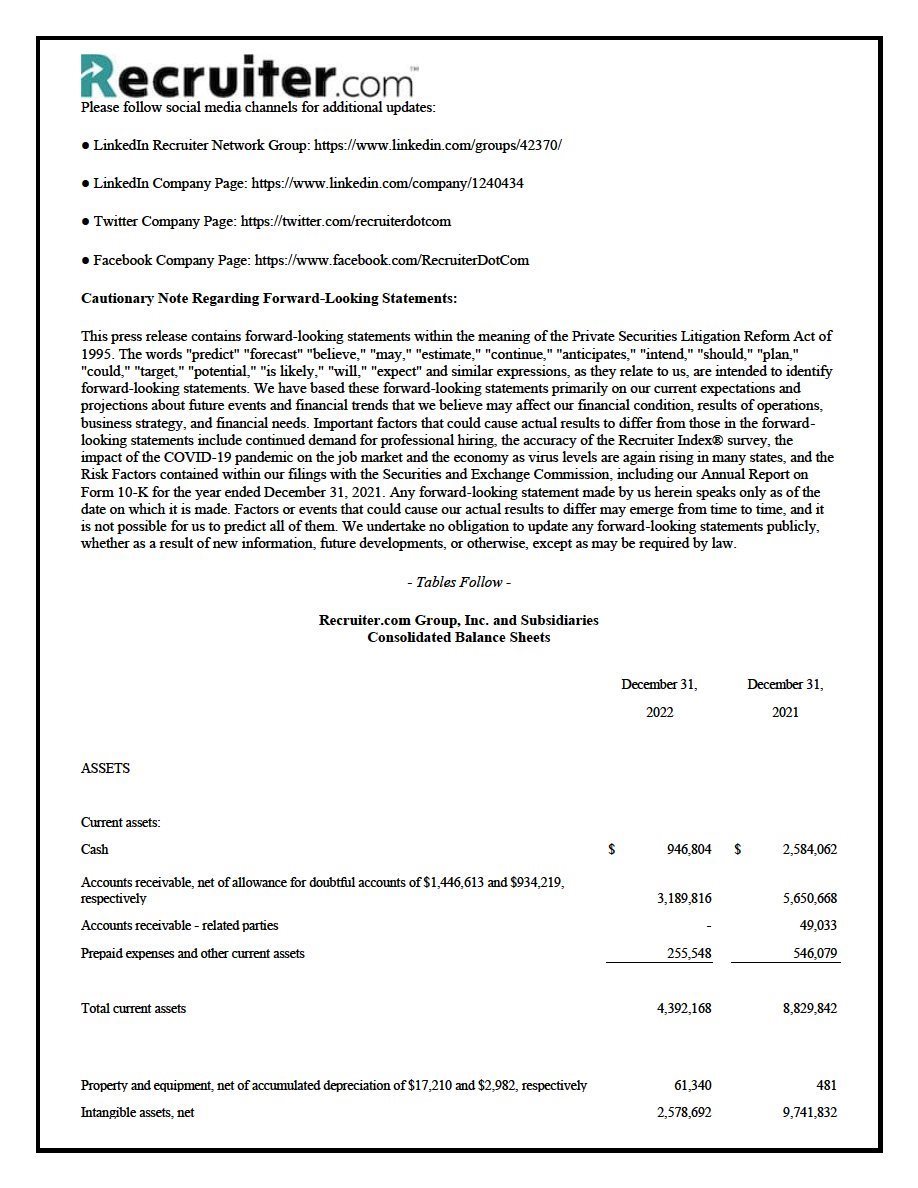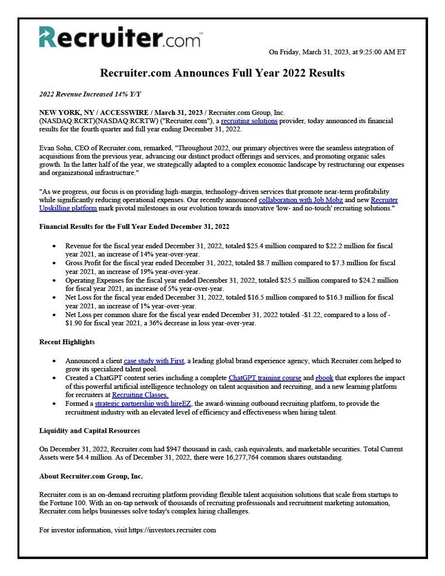 EX-99 2 rcrt_ex99.htm PRESS RELEASE rcrt_ex99.htm