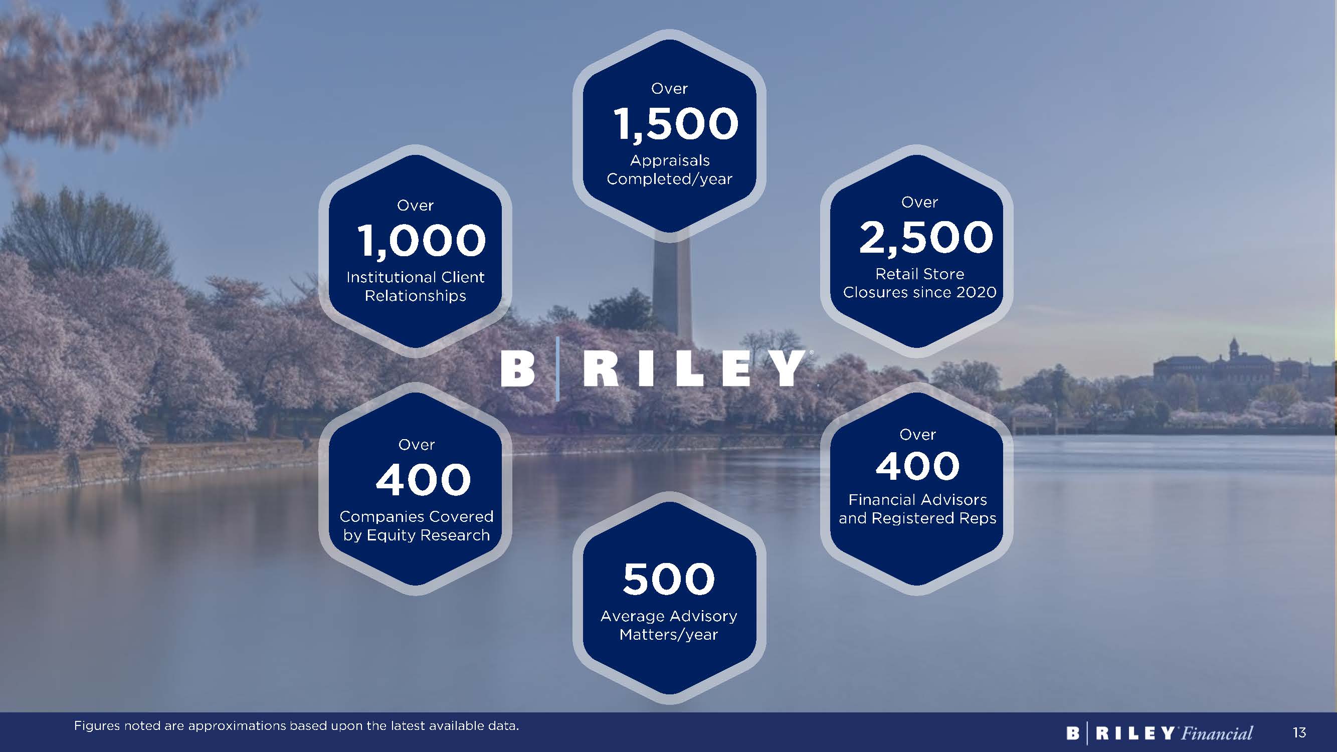 13 Click to edit Master title style Click to edit Master text styles Second level Third level Fourth level Fifth level Over 1,000 Institutional Client Relationships Over 1,500 Appraisals Completed/year Over 2,500 Retail Store Closures since 2020 Over 400 Companies Covered by Equity Research Over 400 Financial Advisors and Registered Reps 500 Average Advisory Matters/year Figures noted are approximations based upon the latest available data.