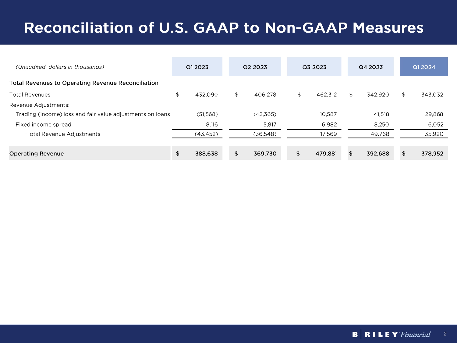 EX-99.2 3 ea020611601ex99-2_briley.htm FIRST QUARTER 2024 SUPPLEMENTAL FINANCIAL DATA DATED MAY 15, 2024