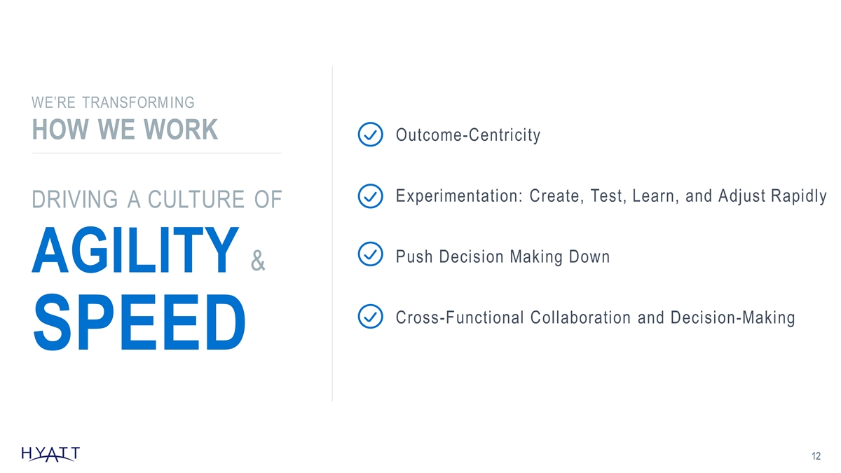 T H E B E E K M A N , N E W Y O R K STRATEGIC INVESTMENTS & EXPANSION OF BRANDS HAVE DRIVEN LOYALTY & PREFERENCE Select ORGANIC BRANDS Luxury PLATFORM S Service LAUNCHED Wellbeing ACQUIRED Luxury / Lifestyle Lifestyle All-Inclusive All-Inclusive LOYALTY PROGRAM RELAUNCH + DATA & DIGITAL INVESTM ENT S 11