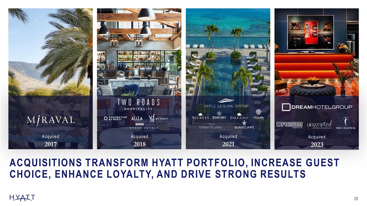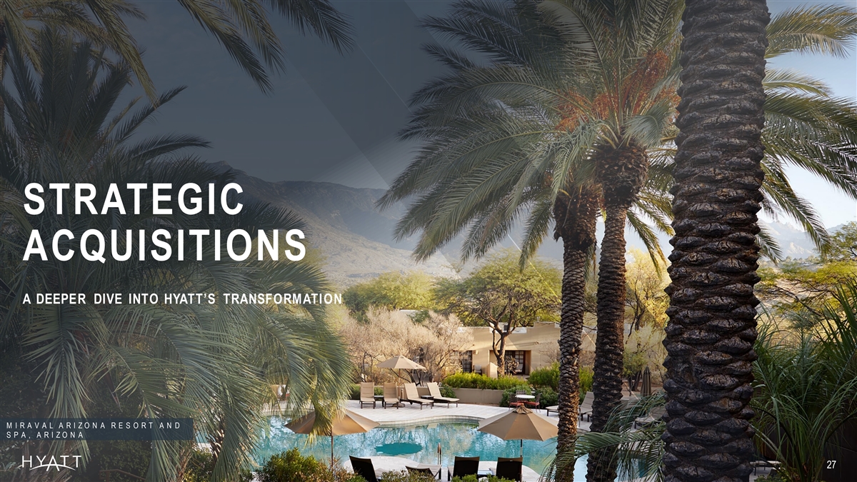STRATEGIC ACQUISITIONS A DEEPER DIVE INTO HYATT’S TRANSFORMATION M I R A V A L A R I Z O N A R E S O R T A N D S P A , A R I Z O N A 27