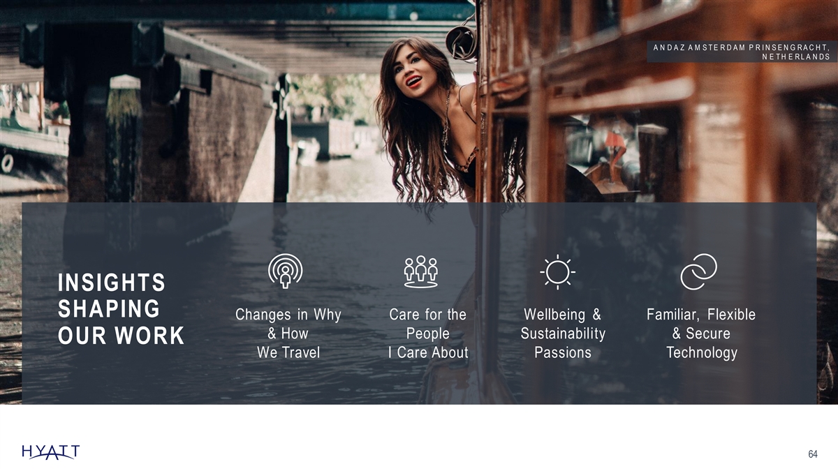 A N D A Z A M S T E R D A M P R I N S E N G R A C H T , N E T H E R L A N D S INSIGHTS SHAPING Changes in Why Care for the Wellbeing & Familiar, Flexible & How People Sustainability & Secure OUR WORK We Travel I Care About Passions Technology 64