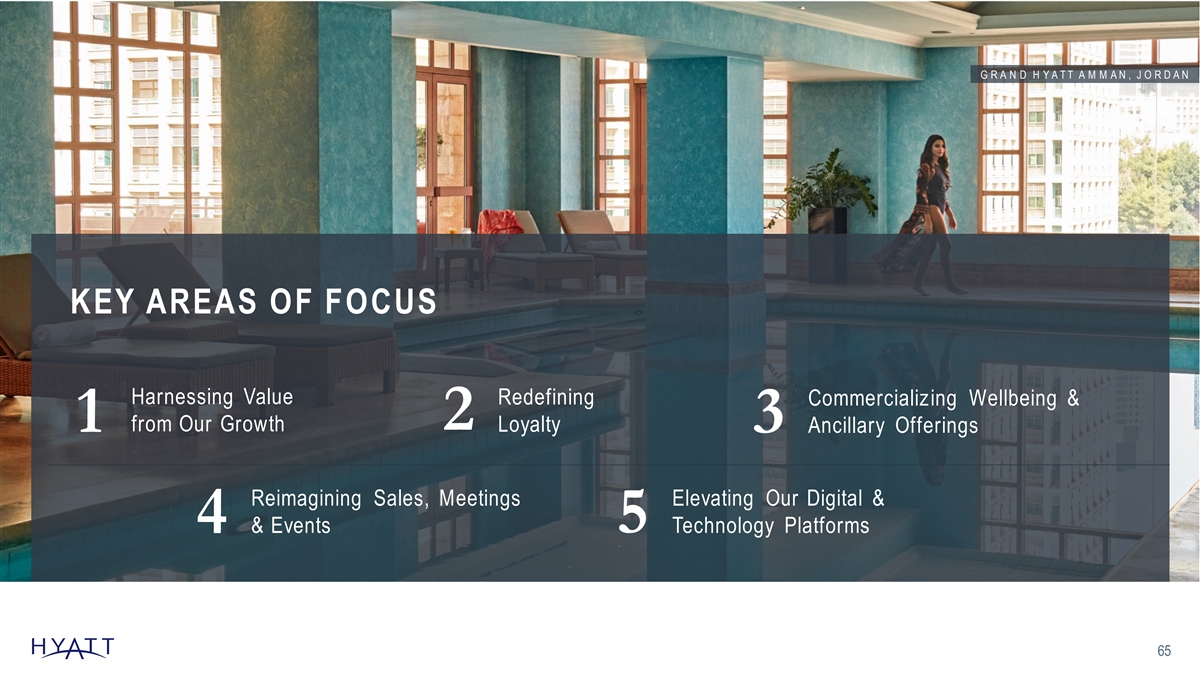 G R A N D H Y A T T A M M A N , J O R D A N KEY AREAS OF FOCUS Harnessing Value Redefining Commercializing Wellbeing & 2 from Our Growth 1 Loyalty 3 Ancillary Offerings Reimagining Sales, Meetings Elevating Our Digital & 4 5 & Events Technology Platforms 65