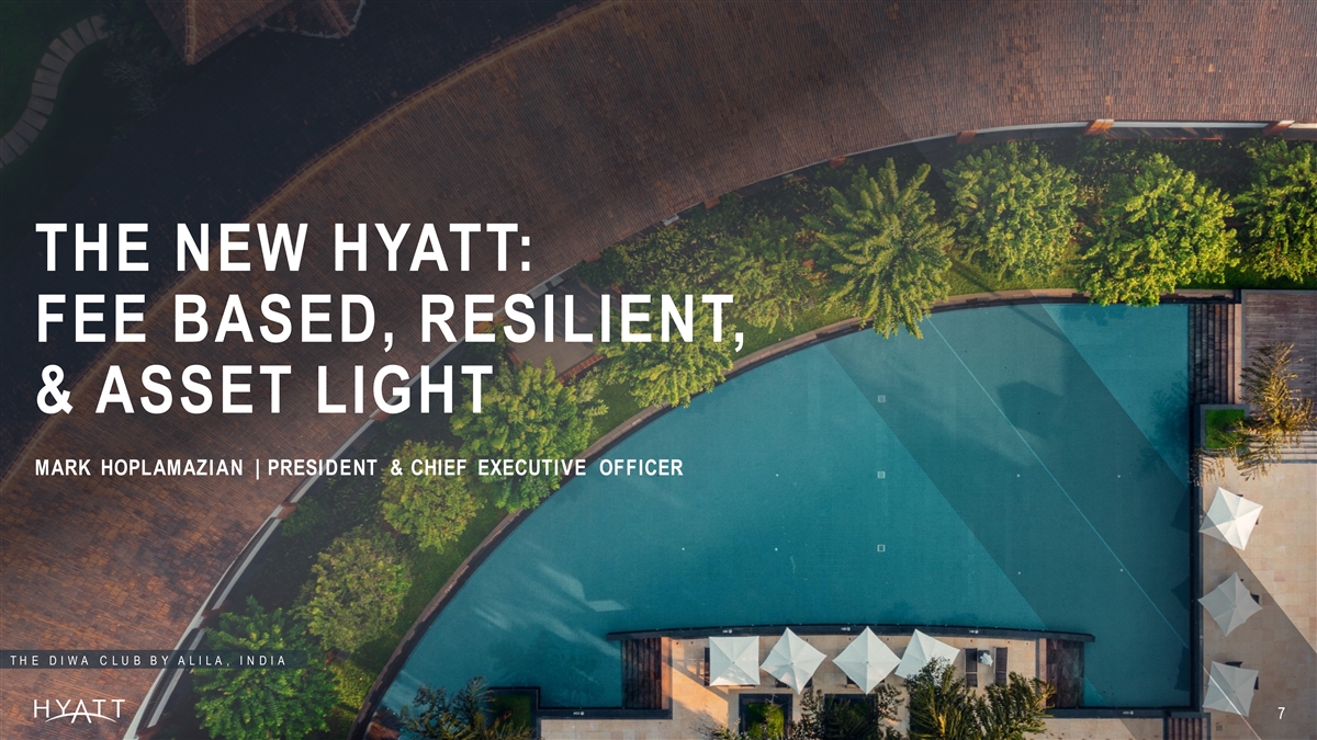 THE NEW HYATT: FEE BASED, RESILIENT, & ASSET LIGHT MARK HOPLAMAZIAN | PRESIDENT & CHIEF EXECUTIVE OFFICER T H E D I W A C L U B B Y A L I L A , I N D I A 7