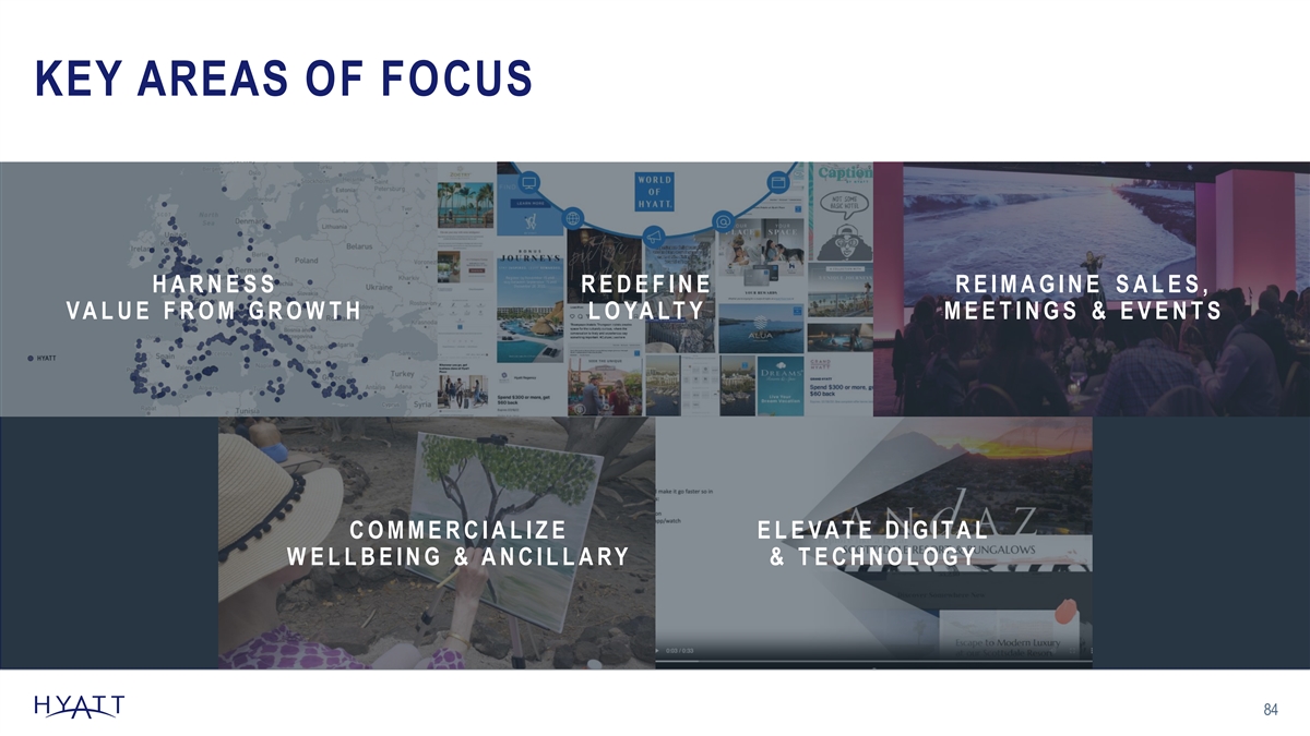 KEY AREAS OF FOCUS H A R N E S S R E D E F I N E R E I M A G I N E S A L E S , V A L U E F R O M G R O W T H L O YA L T Y M E E T I N G S & E V E N T S C O M M E R C I A L I Z E E L E V A T E D I G I T A L W E L L B E I N G & A N C I L L A R Y & T E C H N O L O G Y 84