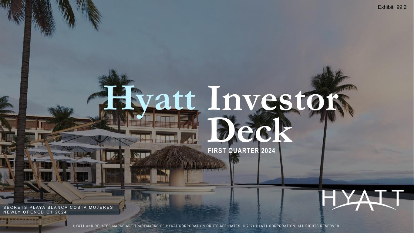 S E C R E T S P L A Y A B L A N C A C O S T A M U J E R E S N E W L Y O P E N E D Q 1 2 0 2 4 Investor Deck Hyatt FIRST QUARTER 2024 H Y A T T A N D R E L A T E D M A R K S A R E T R A D E M A R K S O F H Y A T T C O R P O R A T I O N O R I T S A F F I L I A T E S . © 2 0 2 4 H Y A T T C O R P O R A T I O N . A L L R I G H T S R E S E R V E D .