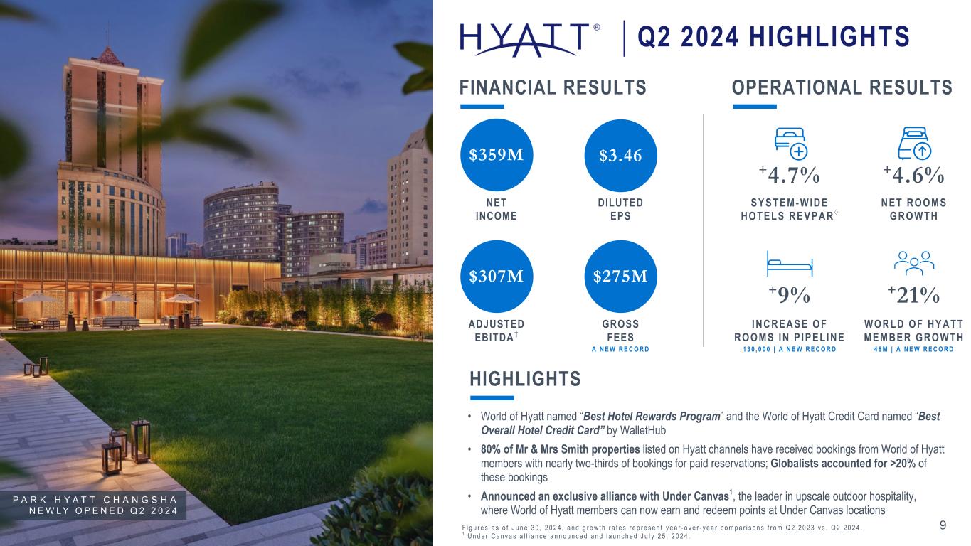 T H E L E G E N D P A R A C A S R E S O R T N E W L Y O P E N E D Q 2 2 0 2 4 Investor Deck Hyatt SECOND QUARTER 2024 H Y A T T A N D R E L A T E D M A R K S A R E T R A D E M A R K S O F H Y A T T C O R P O R A T I O N O R I T S A F F I L I A T E S . © 2 0 2 4 H Y A T T C O R P O R A T I O N . A L L R I G H T S R E S E R V E D .