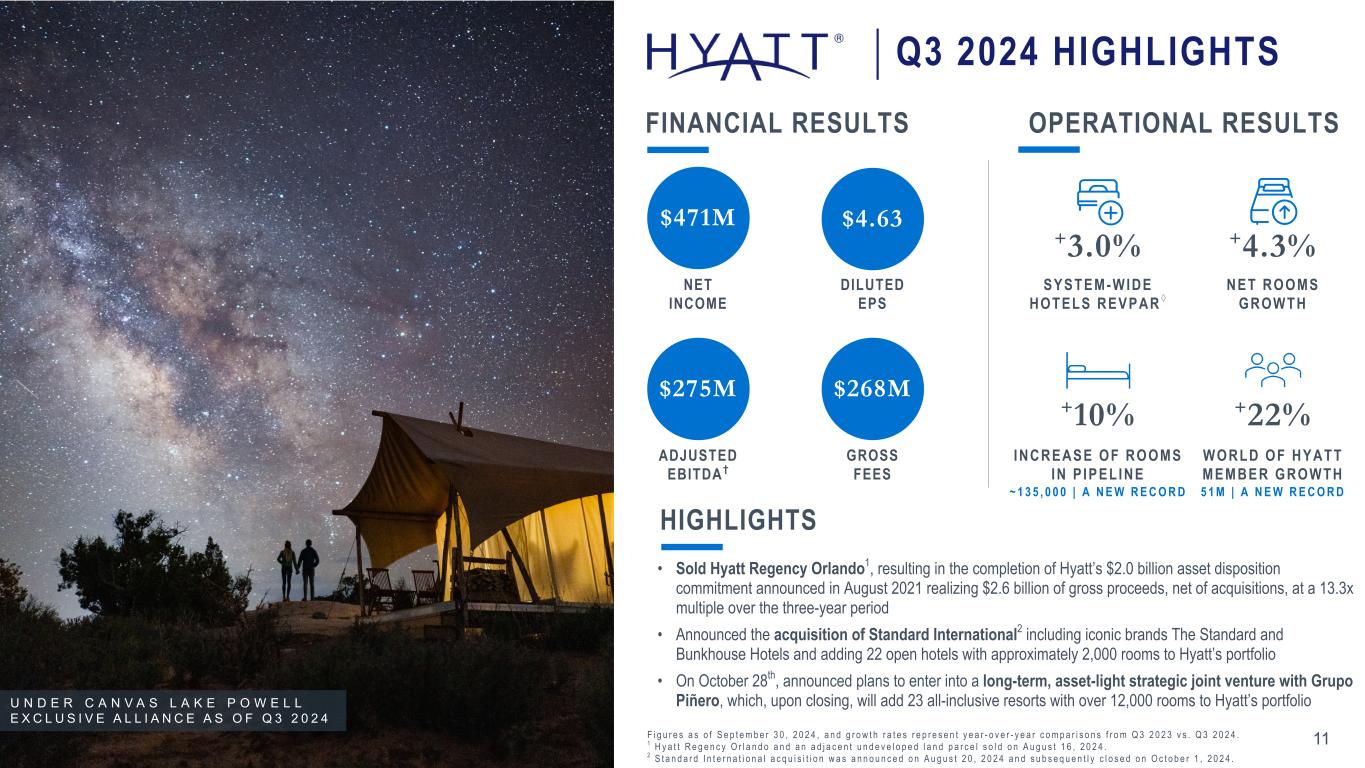 A L I L A S H A N G H A I N E W L Y O P E N E D Q 3 2 0 2 4 Investor Deck Hyatt THIRD QUARTER 2024 H Y A T T A N D R E L A T E D M A R K S A R E T R A D E M A R K S O F H Y A T T C O R P O R A T I O N O R I T S A F F I L I A T E S . © 2 0 2 4 H Y A T T C O R P O R A T I O N . A L L R I G H T S R E S E R V E D .