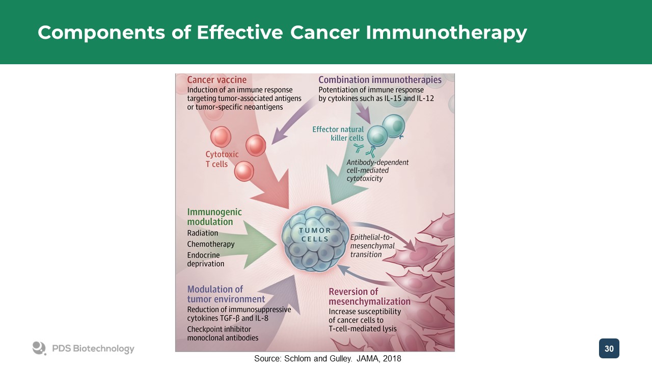 Components of Effective Cancer Immunotherapy  Source: Schlom and Gulley. JAMA, 2018