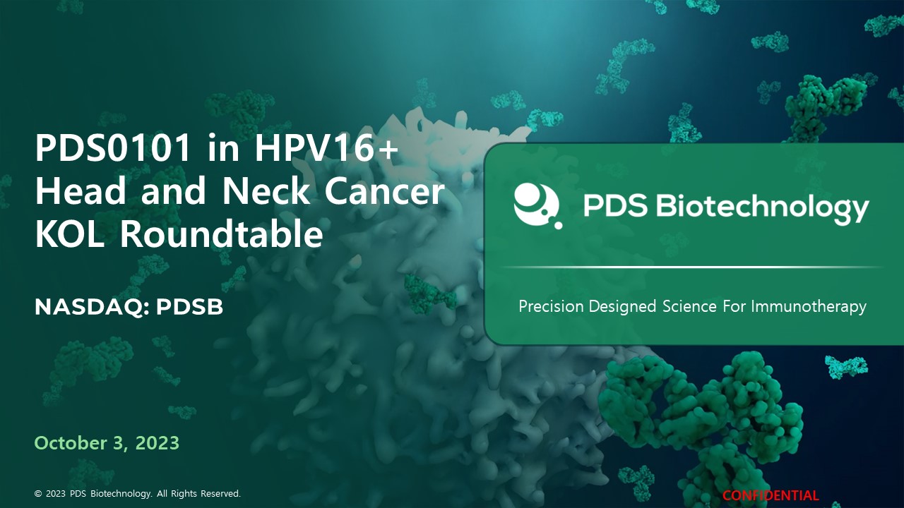 PDS0101 in HPV16+ Head and Neck Cancer KOL Roundtable  NASDAQ: PDSB  October 3, 2023