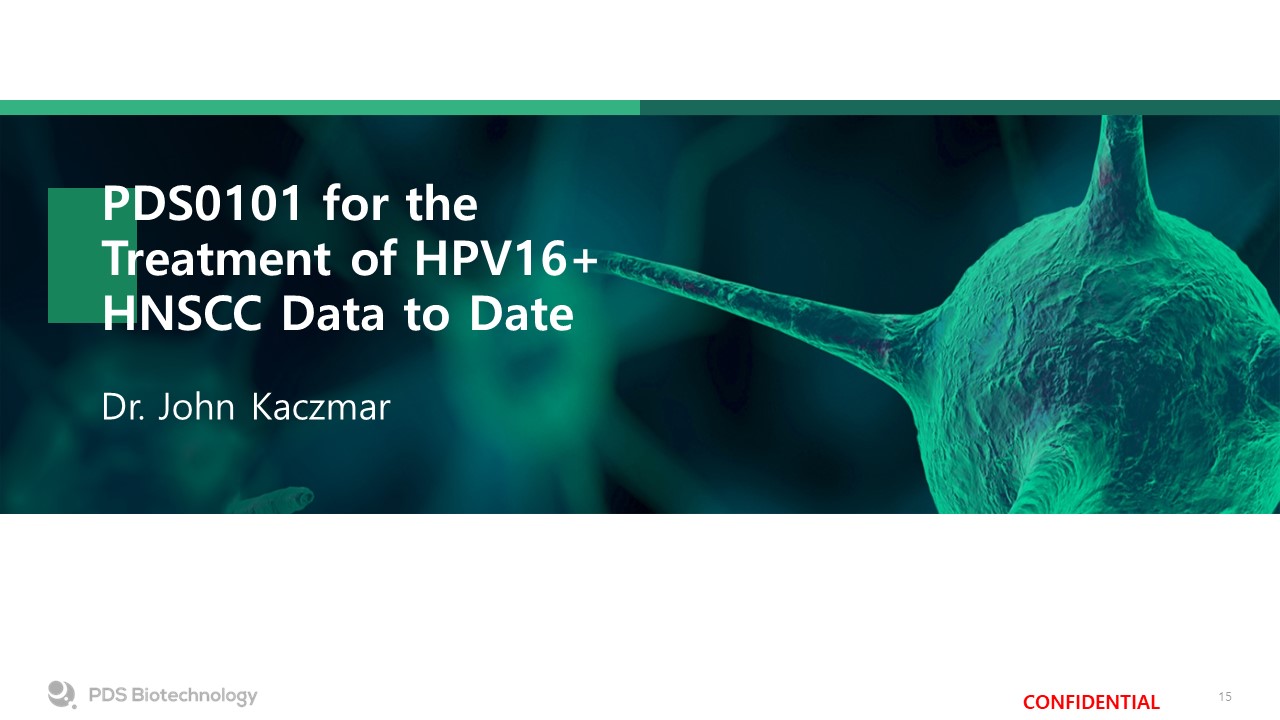 PDS0101 for the Treatment of HPV16+ HNSCC Data to Date  Dr. John Kaczmar