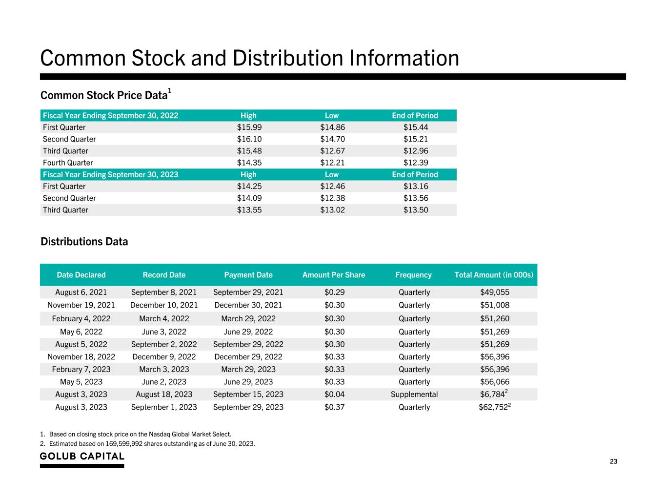 Confidential | for discussion purposes only GOLUB CAPITAL BDC, INC. EARNINGS PRESENTATION QUARTER ENDED JUNE 30, 2023