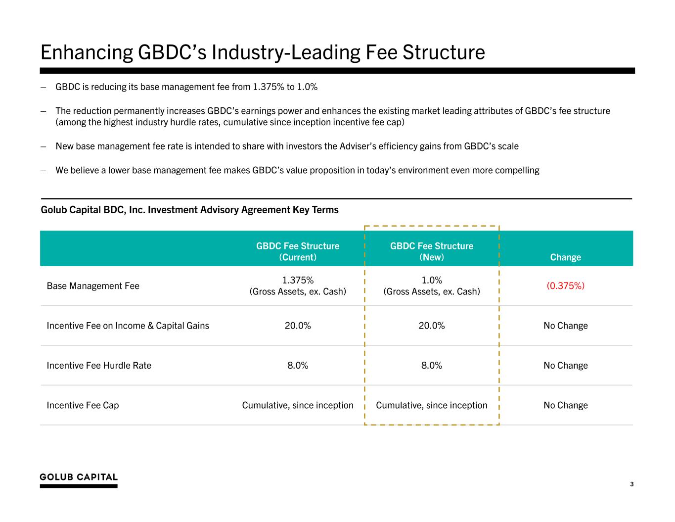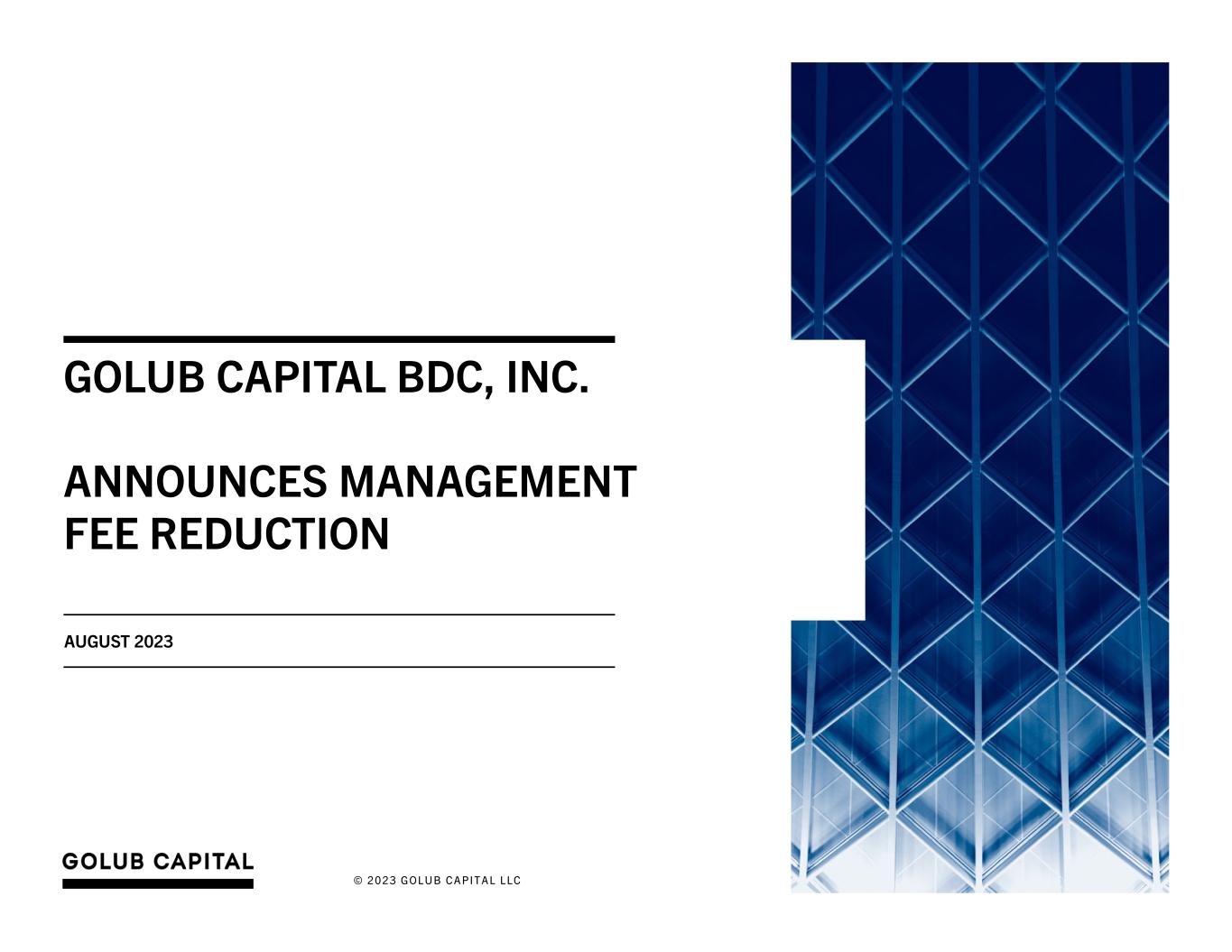GOLUB CAPITAL BDC, INC. ANNOUNCES MANAGEMENT FEE REDUCTION AUGUST 2023 © 2023 GOLUB CAPITAL LLC