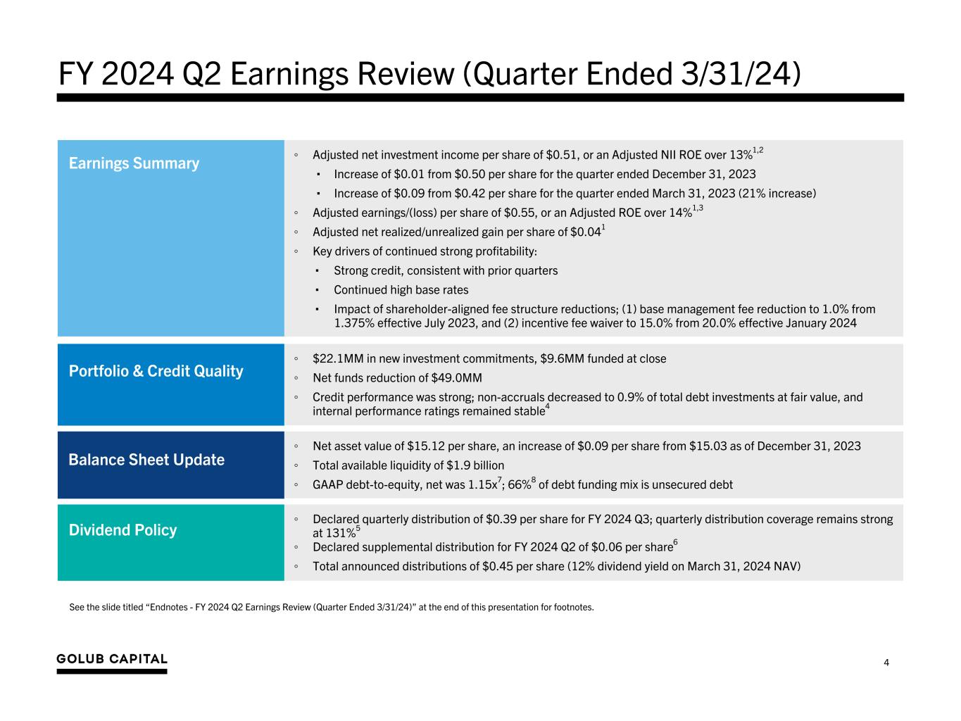 Confidential | for discussion purposes only GOLUB CAPITAL BDC, INC. EARNINGS PRESENTATION QUARTER ENDED MARCH 31, 2024