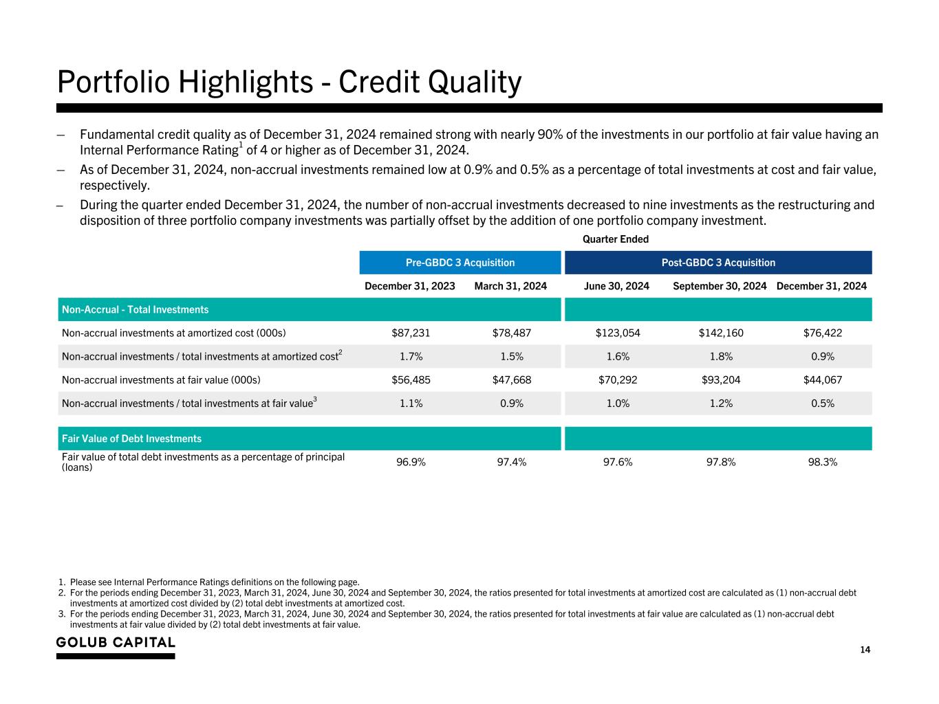 Confidential | for discussion purposes only GOLUB CAPITAL BDC, INC. EARNINGS PRESENTATION QUARTER ENDED DECEMBER 31, 2024