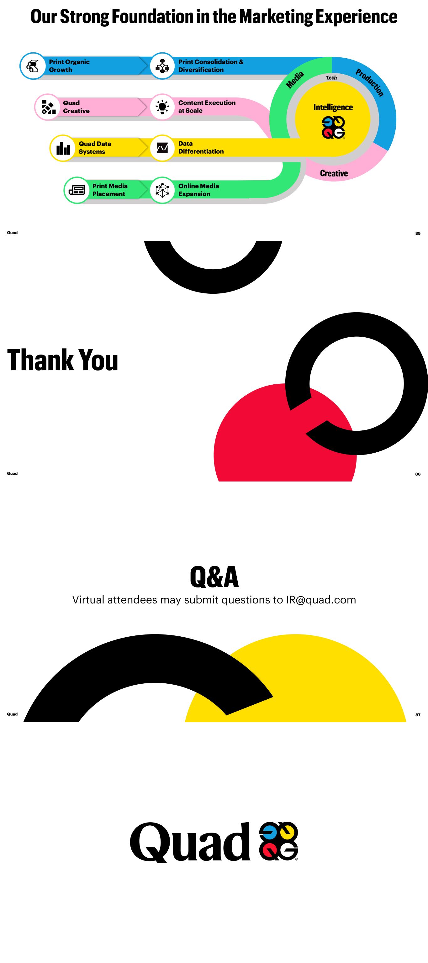 Online Media Expansion Content Execution at Scale Print Consolidation & Diversification Data Differentiation Quad Creative Quad 85 Quad Data Systems Print Media Placement Print Organic Growth Quad 86 Quad Virtual attendees may submit questions to IR@quad.com 87