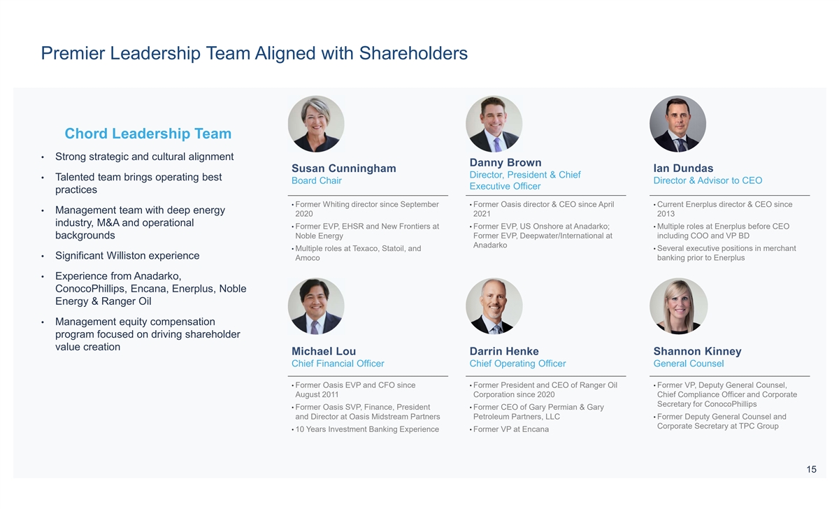 Combination Creates a Premier Williston Basin Oil Operator Significant Synergies & Value Enhancing Scale Accretion on Key Metrics Financial Strength with Peer-Leading Upside Potential Shareholder Returns 14