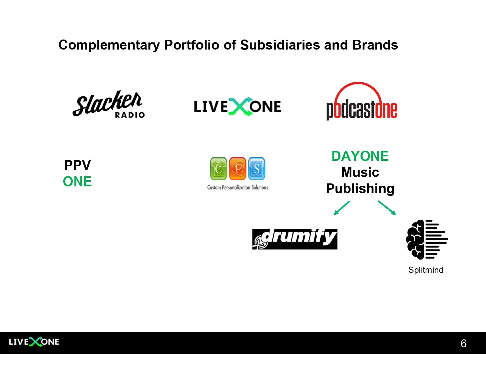 6 Complementary Portfolio of Subsidiaries and Brands PPV ONE DAYONE Music Publishing Splitmind