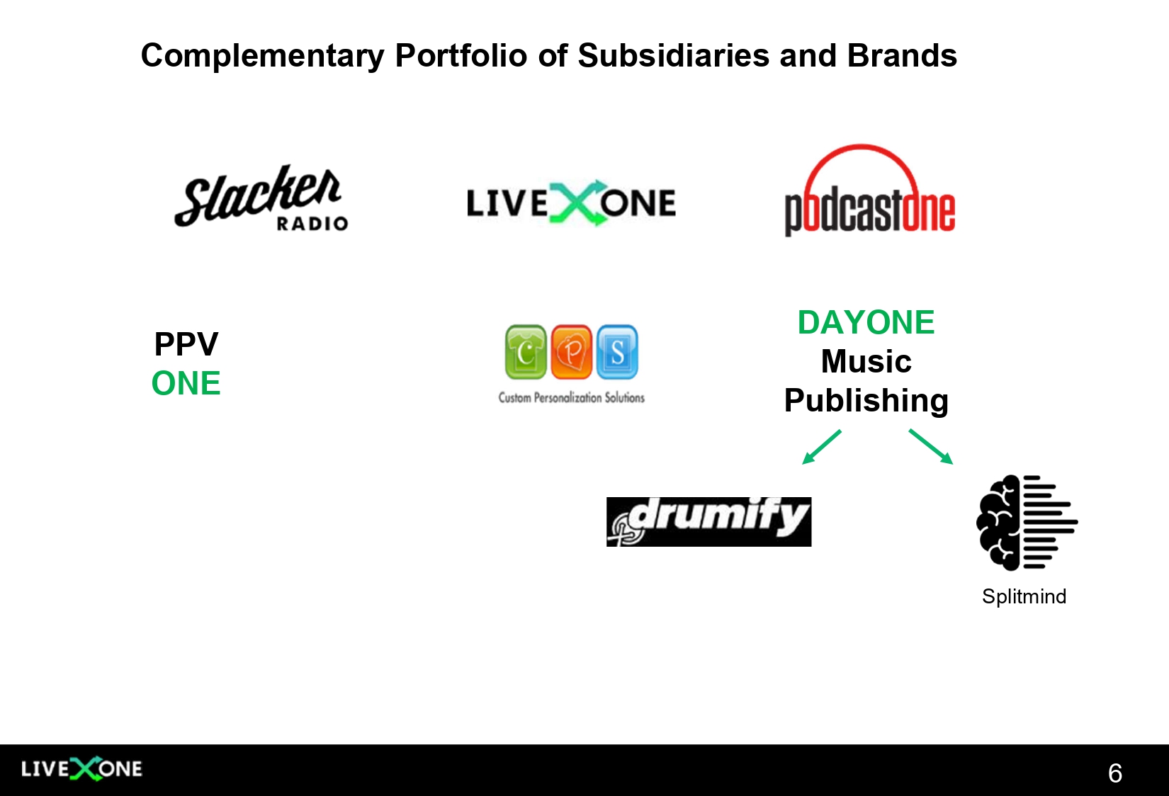 Complementary Portfolio of Subsidiaries and Brands PPV ONE DAYONE Music Publishing Splitmind 6