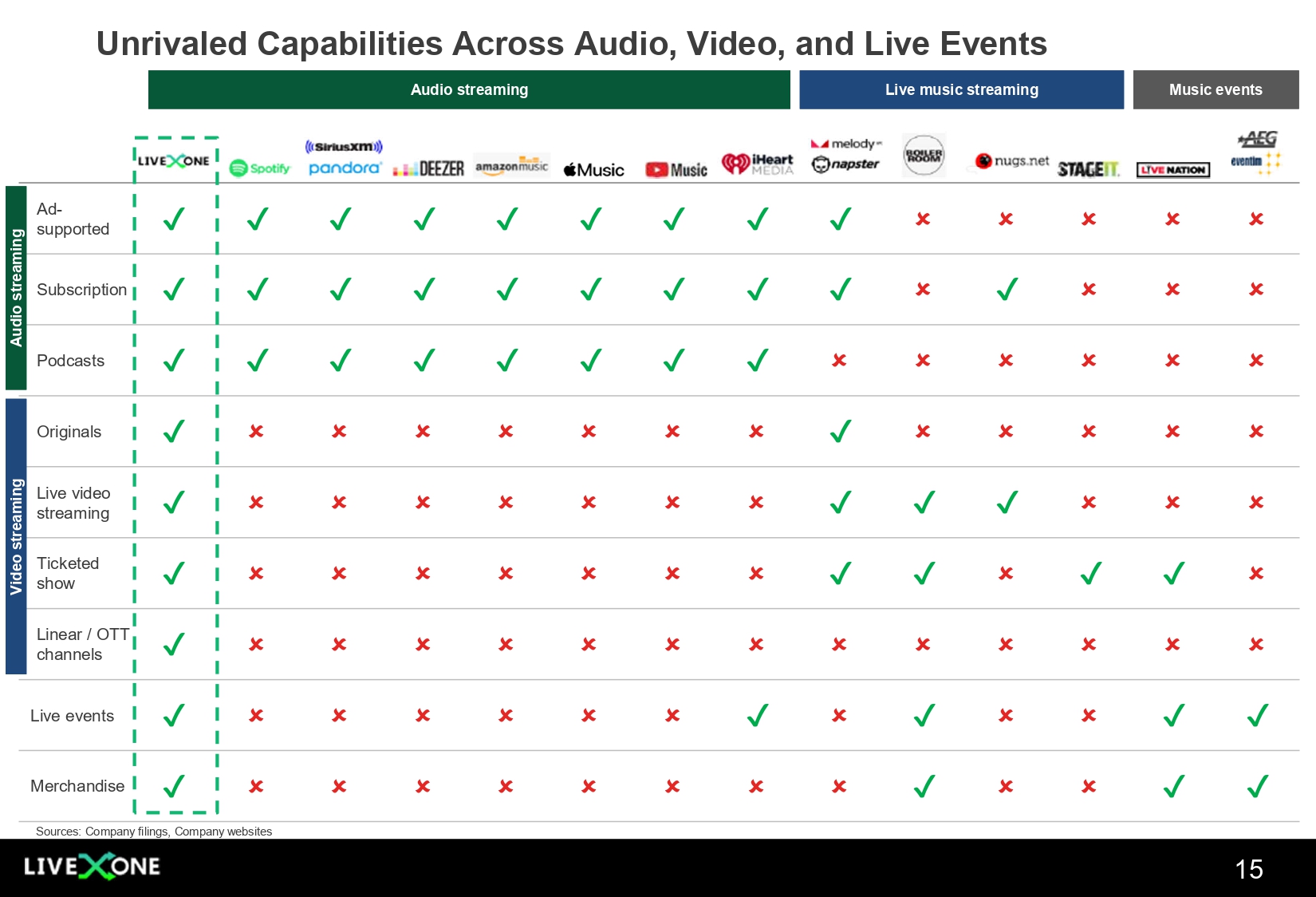 supported ٷ ٷ ٷ ٷ ٷ ٷ ٷ ٷ ٷ Live events ٷ ٷ ٷ ٷ ٷ ٷ ٷ ٷ ٷ ٷ Merchandise Sources: Company filings, Company websites Audio streaming Live music streaming Audio streaming Live music streaming Music events Music events Unrivaled Capabilities Across Audio, Video, and Live Events Audio streaming ٷ ٷ ٷ ٷ ٷ ٷ ٷ ٷ ٷ Ad - Subscription dio streaming ٷ ٷ ٷ ٷ ٷ ٷ Podcasts Au Video streaming ٷ ٷ ٷ ٷ ٷ ٷ ٷ ٷ ٷ ٷ ٷ ٷ Originals Video streaming ٷ ٷ ٷ ٷ ٷ ٷ ٷ ٷ ٷ ٷ Live video streaming ٷ ٷ ٷ ٷ ٷ ٷ ٷ ٷ ٷ Ticketed show ٷ ٷ ٷ ٷ ٷ ٷ ٷ ٷ ٷ ٷ ٷ ٷ ٷ Linear / OTT channels 15