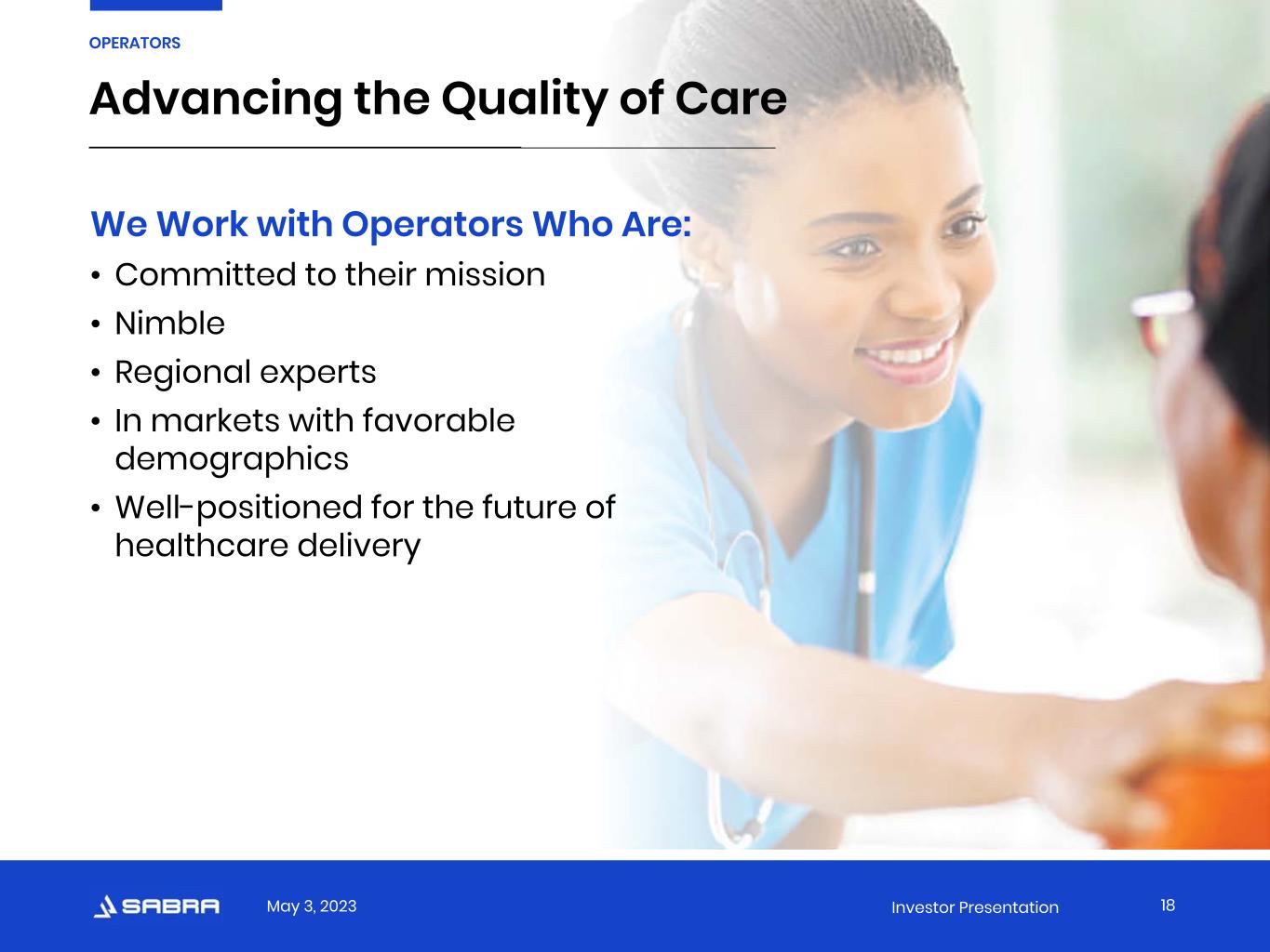 May 3, 2023 Investor Presentation “We invest in relationships with operators who are nimble and poised to deliver excellent care now and in the future.” -Peter Nyland, Executive Vice President, Asset Management 17 PORTFOLIO