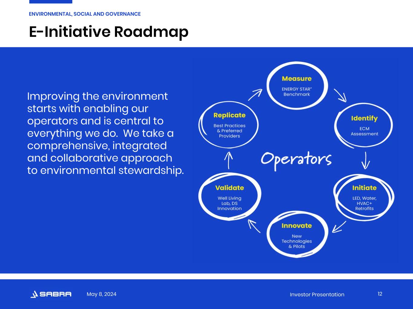 May 8, 2024 Investor Presentation E-Initiative Roadmap 12 ENVIRONMENTAL, SOCIAL AND GOVERNANCE Improving the environment starts with enabling our operators and is central to everything we do. We take a comprehensive, integrated and collaborative approach to environmental stewardship.