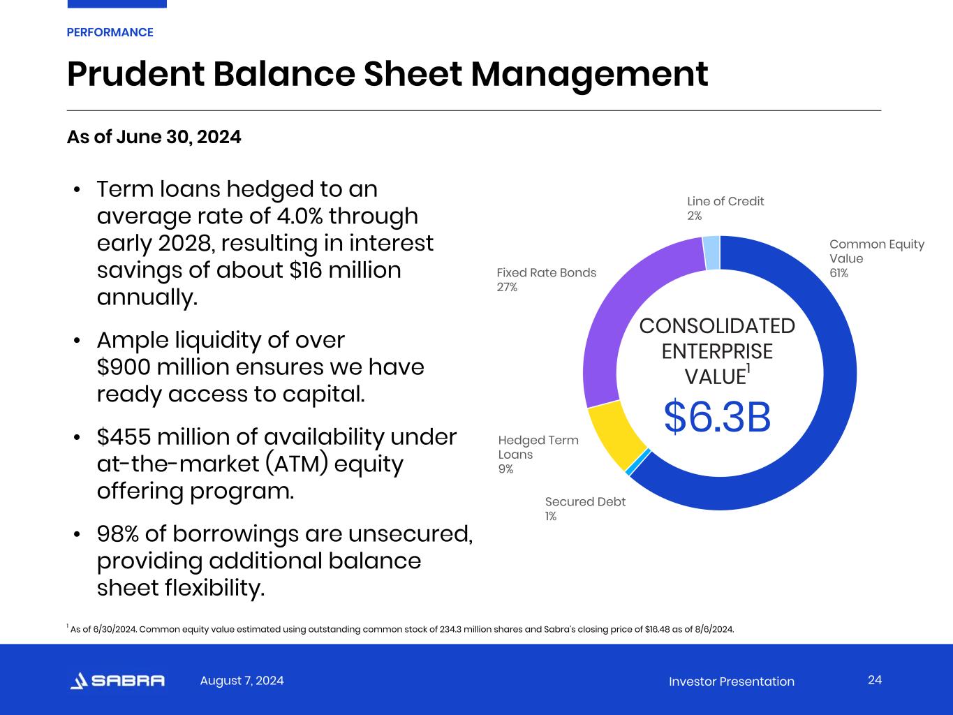 August 7, 2024 Investor Presentation “Our strong balance sheet and ready access to capital allows us to thoughtfully finance investment opportunities and drive value for our shareholders.” –Michael Costa, Chief Financial Officer 23 PERFORMANCE