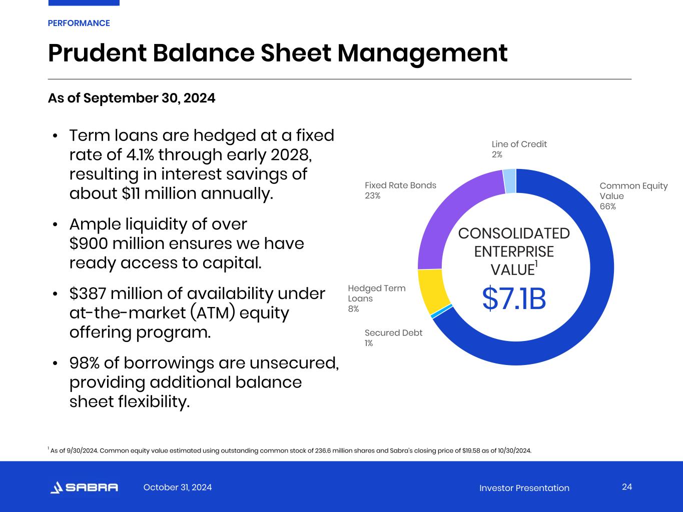 October 31, 2024 Investor Presentation “Our strong balance sheet and ready access to capital allows us to thoughtfully finance investment opportunities and drive value for our shareholders.” –Michael Costa, Chief Financial Officer 23 PERFORMANCE