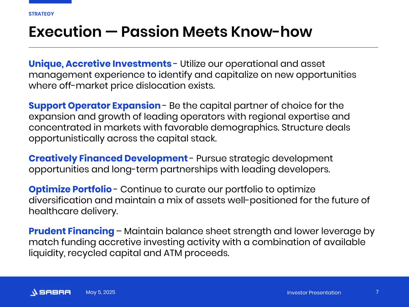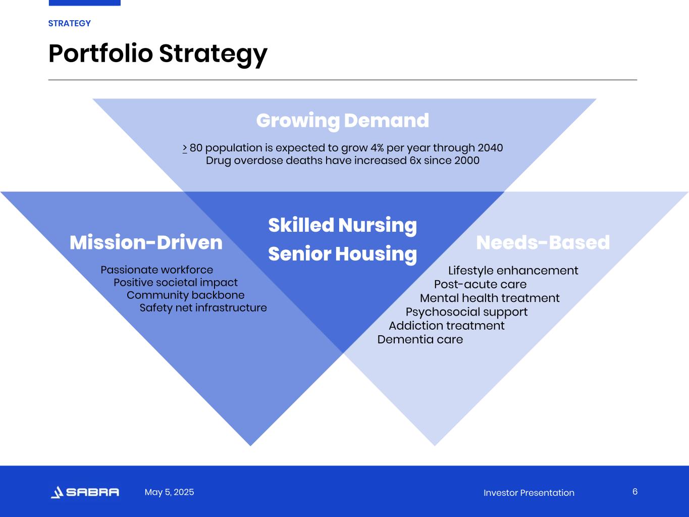 LOREM IPSUM Heading May 5, 2025 Investor Presentation Our passion for quality care and deep industry experience uniquely position Sabra to succeed in the dynamic healthcare real estate market. We have the size, know-how and resilient balance sheet necessary to deliver long-term value to shareholders. Uniquely Positioned to Thrive 4