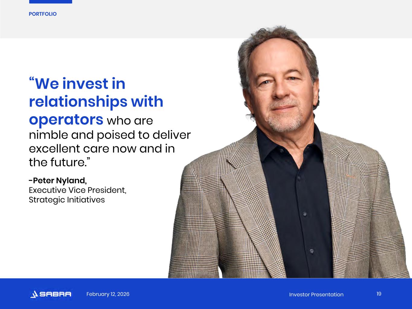 February 12, 2026 Investor Presentation “We invest in relationships with operators who are nimble and poised to deliver excellent care now and in the future.” -Peter Nyland, Executive Vice President, Strategic Initiatives 19 PORTFOLIO