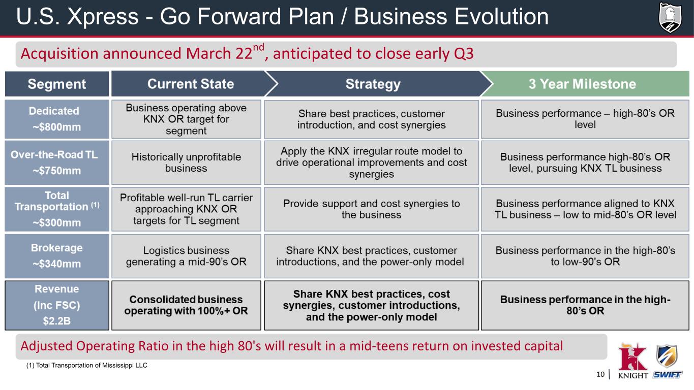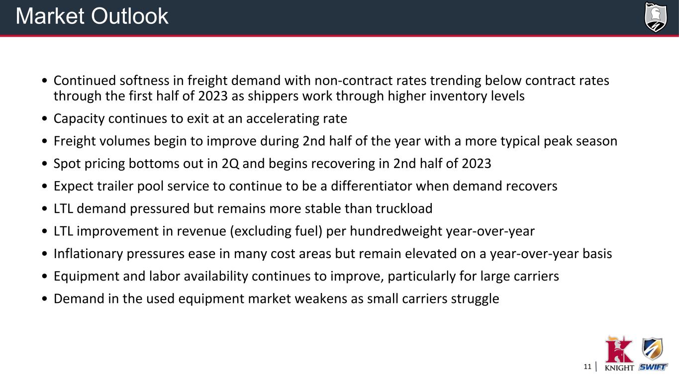 10 U.S. Xpress - Go Forward Plan / Business Evolution (1) Total Transportation of Mississippi LLC Acquisition announced March 22nd, anticipated to close early Q3 Adjusted Operating Ratio in the high 80's will result in a mid-teens return on invested capital