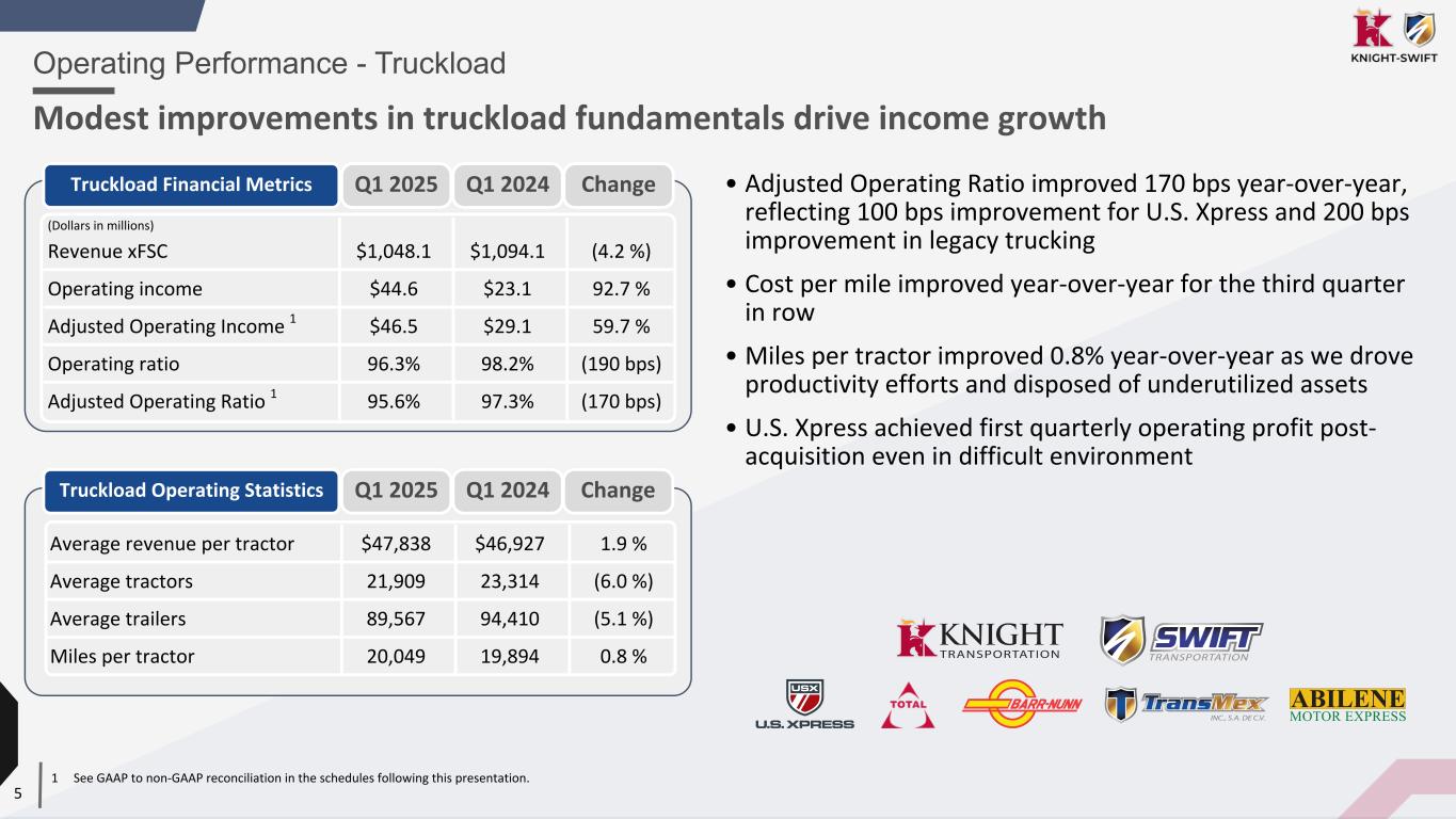 First Quarter 2025 Earnings Knight - Swift Transportation Exhibit 99.2