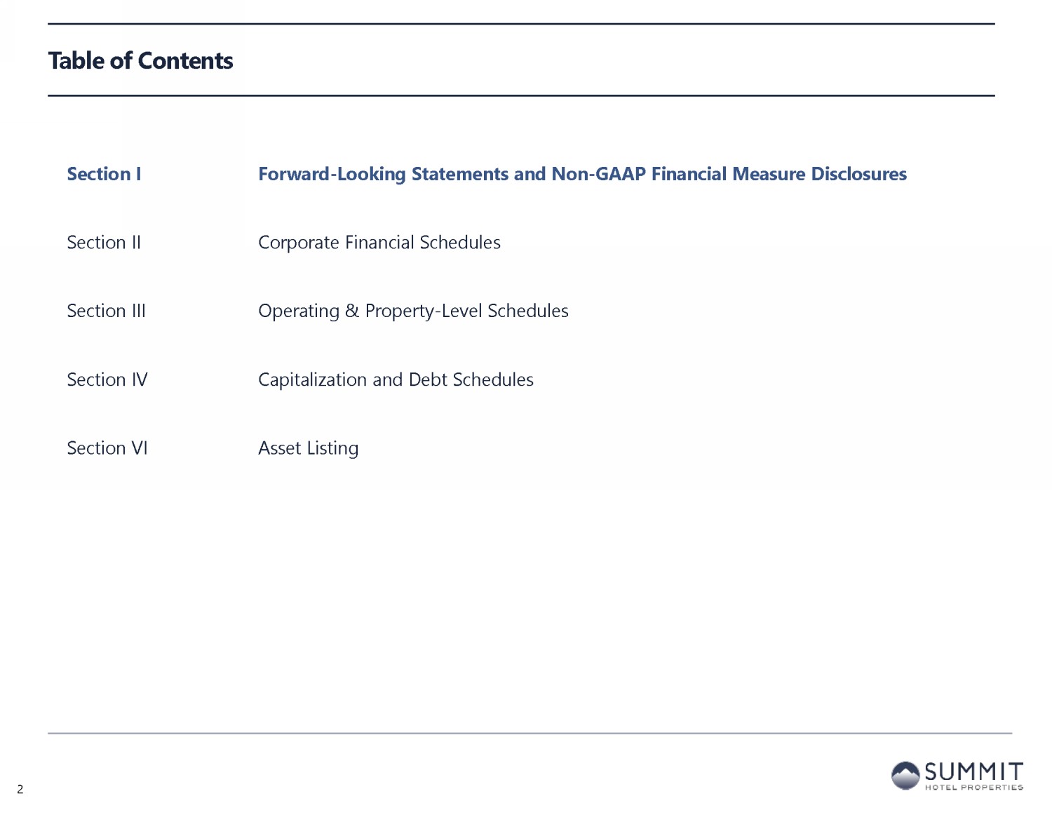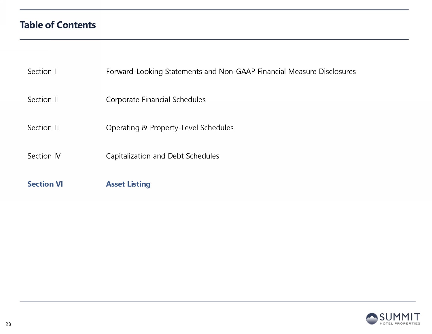 Table of Contents Section I Forward - Looking Statements and Non - GAAP Financial Measure Disclosures Section II Corporate Financial Schedules Section III Operating & Property - Level Schedules Section IV Capitalization and Debt Schedules Section VI Asset Listing 28