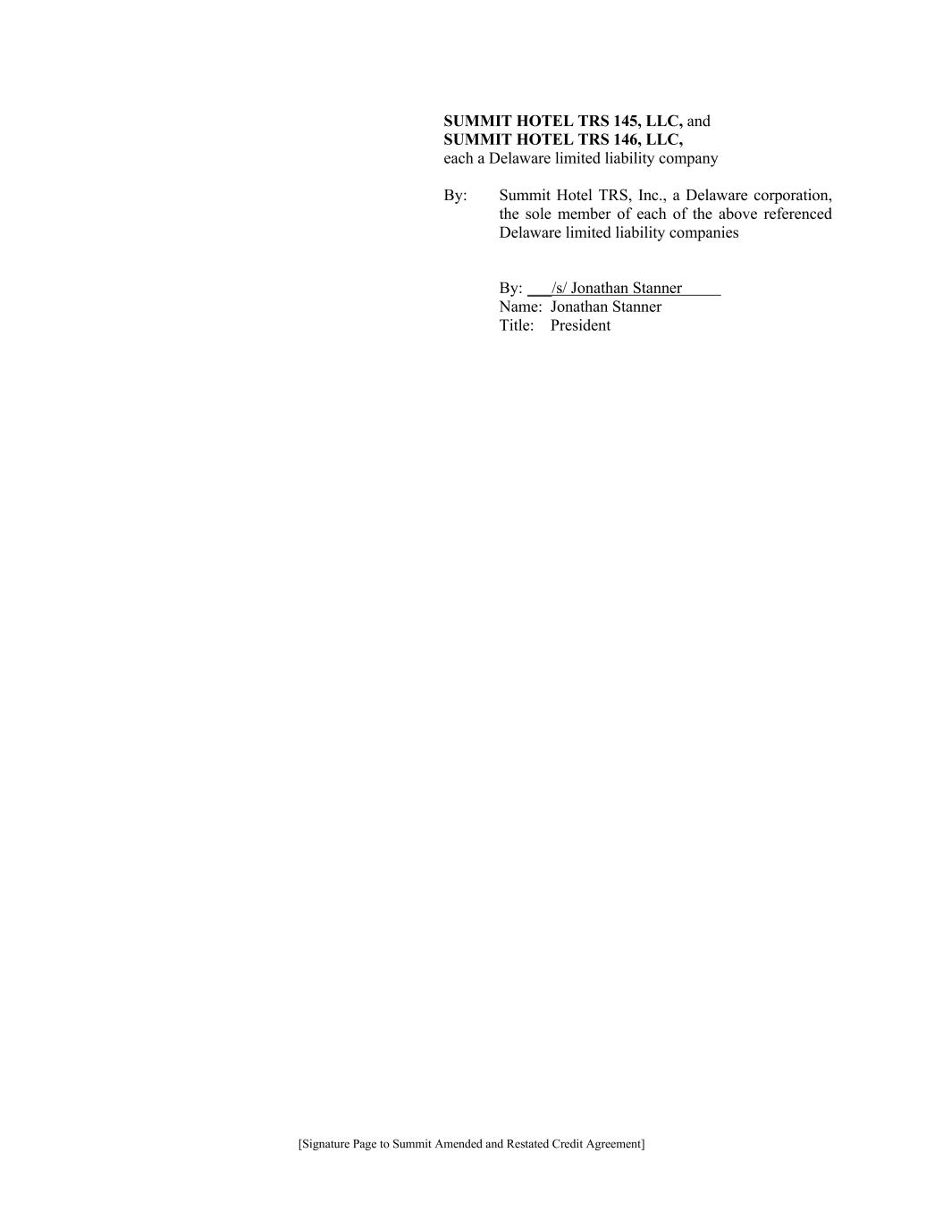 [Signature Page to Summit Amended and Restated Credit Agreement] SUMMIT HOTEL TRS 145, LLC, and SUMMIT HOTEL TRS 146, LLC, each a Delaware limited liability company By: Summit Hotel TRS, Inc., a Delaware corporation, the sole member of each of the above referenced Delaware limited liability companies By: ___/s/ Jonathan Stanner Name: Jonathan Stanner Title: President