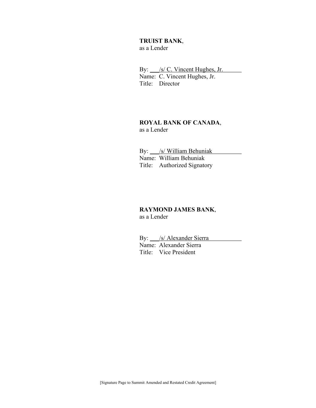[Signature Page to Summit Amended and Restated Credit Agreement] TRUIST BANK, as a Lender By: ___/s/ C. Vincent Hughes, Jr. Name: C. Vincent Hughes, Jr. Title: Director ROYAL BANK OF CANADA, as a Lender By: ___/s/ William Behuniak Name: William Behuniak Title: Authorized Signatory RAYMOND JAMES BANK, as a Lender By: ___/s/ Alexander Sierra Name: Alexander Sierra Title: Vice President