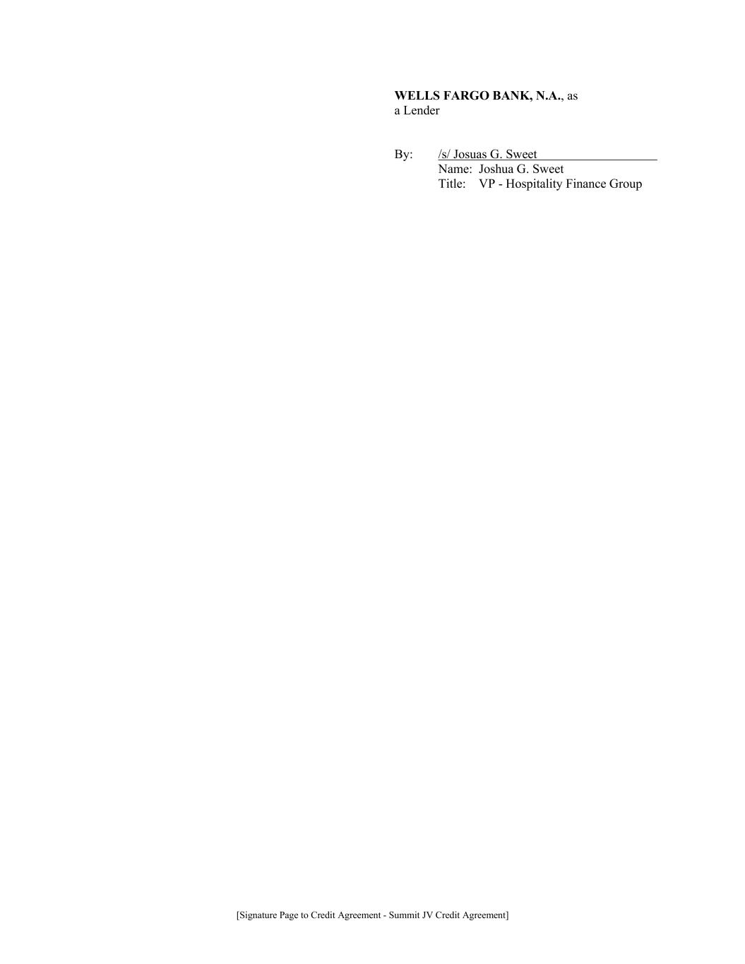 [Signature Page to Credit Agreement - Summit JV Credit Agreement] WELLS FARGO BANK, N.A., as a Lender By: /s/ Josuas G. Sweet Name: Joshua G. Sweet Title: VP - Hospitality Finance Group