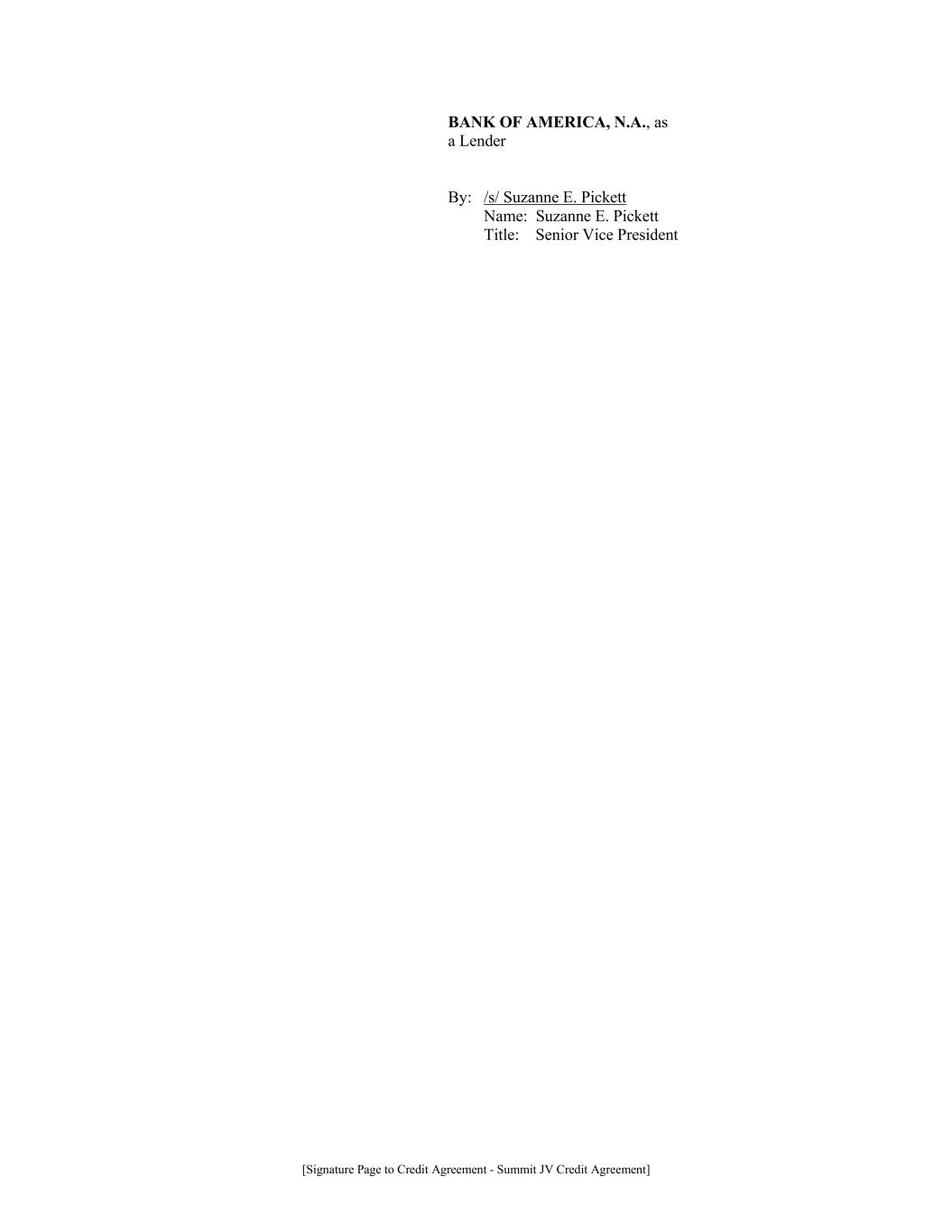 [Signature Page to Credit Agreement - Summit JV Credit Agreement] BANK OF AMERICA, N.A., as a Lender By: /s/ Suzanne E. Pickett Name: Suzanne E. Pickett Title: Senior Vice President