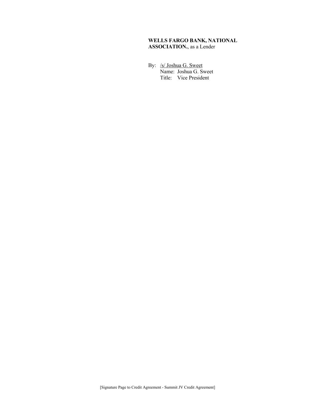 [Signature Page to Credit Agreement - Summit JV Credit Agreement] WELLS FARGO BANK, NATIONAL ASSOCIATION., as a Lender By: /s/ Joshua G. Sweet Name: Joshua G. Sweet Title: Vice President