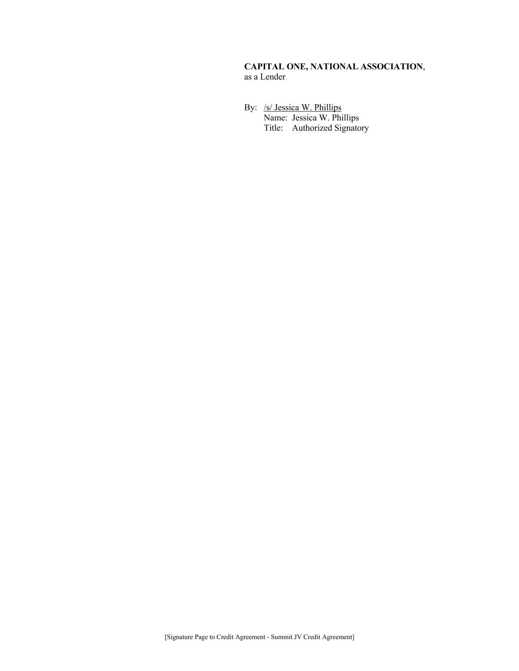 [Signature Page to Credit Agreement - Summit JV Credit Agreement] CAPITAL ONE, NATIONAL ASSOCIATION, as a Lender By: /s/ Jessica W. Phillips Name: Jessica W. Phillips Title: Authorized Signatory
