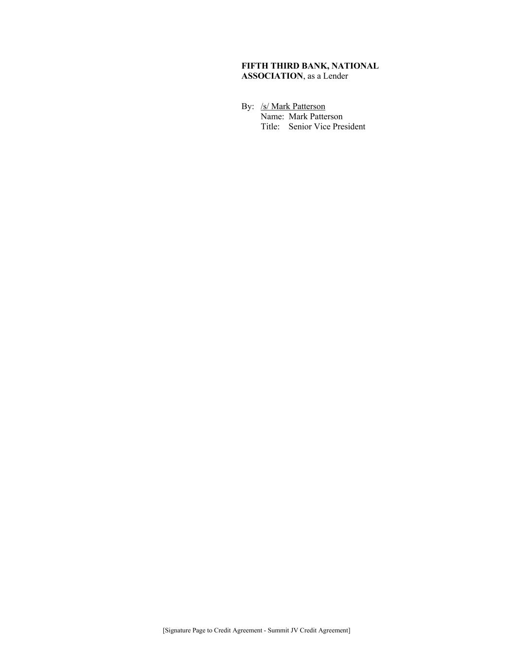 [Signature Page to Credit Agreement - Summit JV Credit Agreement] FIFTH THIRD BANK, NATIONAL ASSOCIATION, as a Lender By: /s/ Mark Patterson Name: Mark Patterson Title: Senior Vice President