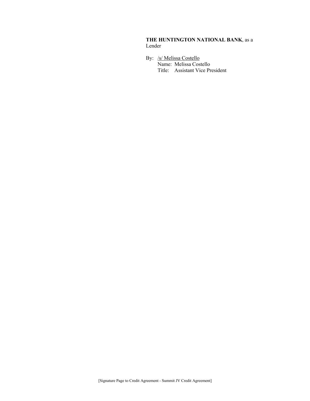 [Signature Page to Credit Agreement - Summit JV Credit Agreement] THE HUNTINGTON NATIONAL BANK, as a Lender By: /s/ Melissa Costello Name: Melissa Costello Title: Assistant Vice President