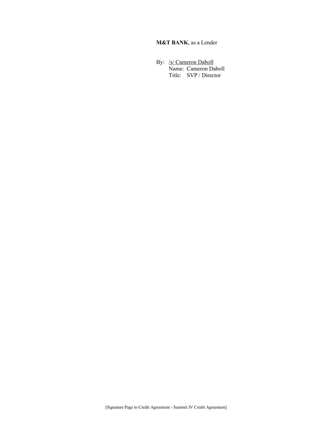 [Signature Page to Credit Agreement - Summit JV Credit Agreement] M&T BANK, as a Lender By: /s/ Cameron Daboll Name: Cameron Daboll Title: SVP / Director